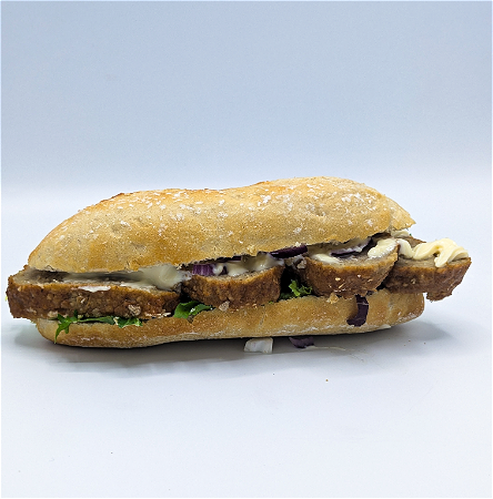 Kipfilet | Ei | Komkommer | Tomaat | Gemengde sla | Saus: Kerrie mayonaise, BBQ saus of Honing mosterd